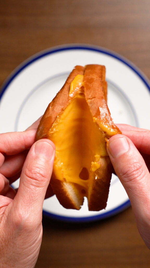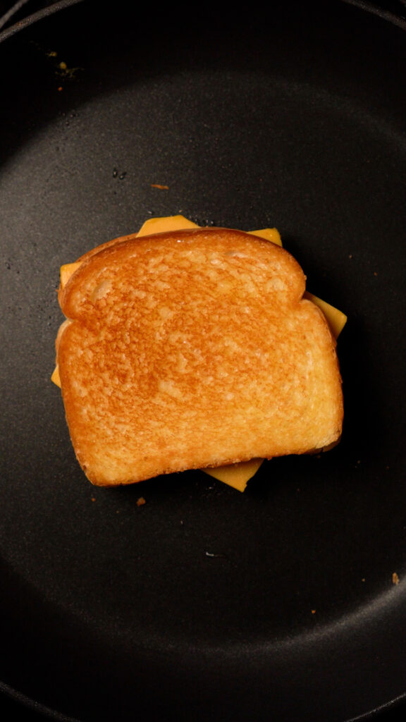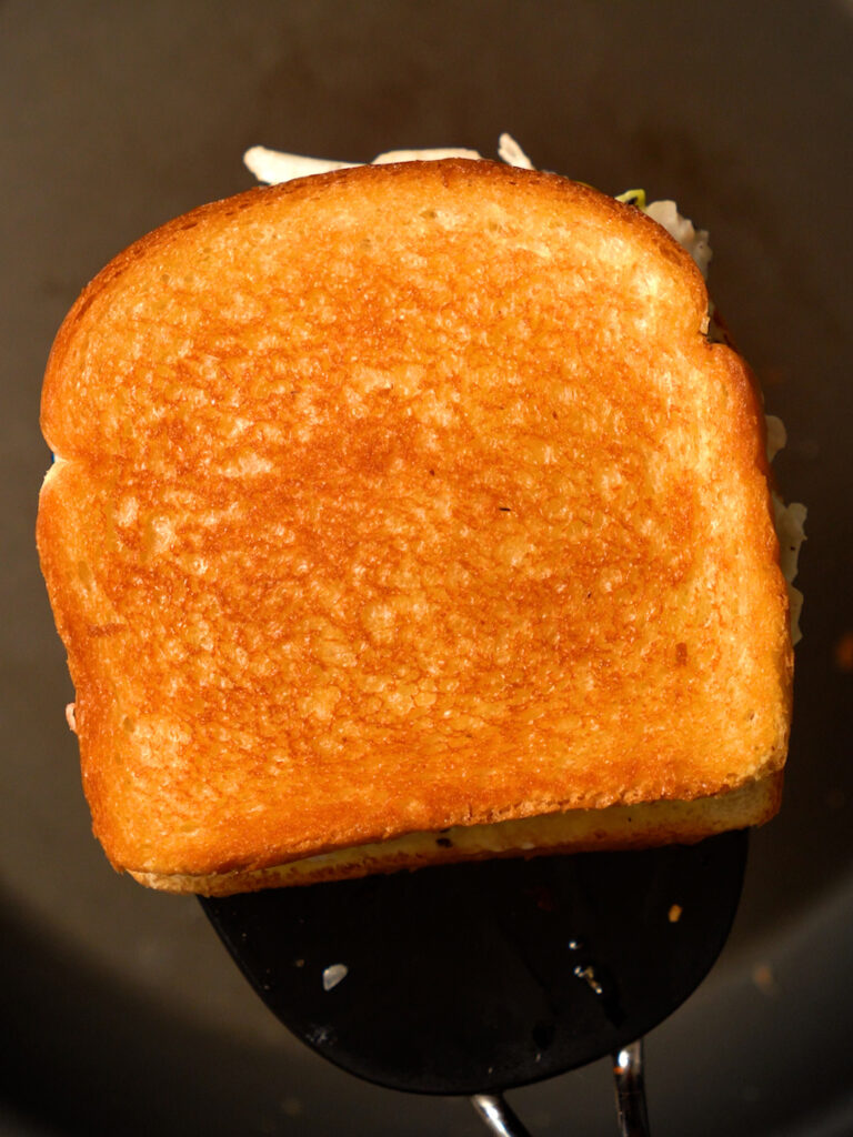 - Grill on medium low heat until browned (about 4 – 5 minutes, check to make sure you don't burn the bread). Flip and grill the other side until browned. You can also add a lid to the skillet to help the cheese melt.